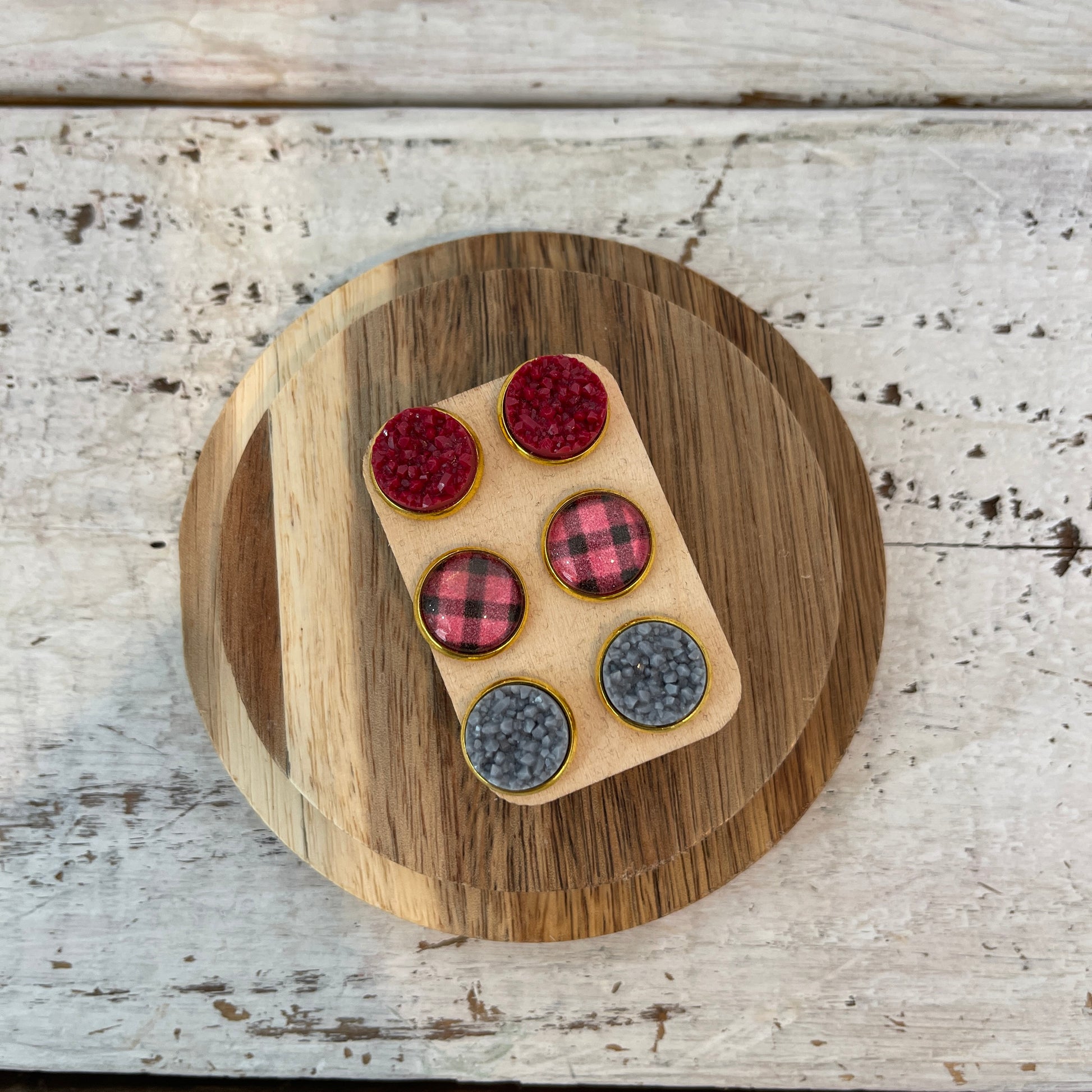 set of 2 12mm druzy studs & buffalo plaid 12mm